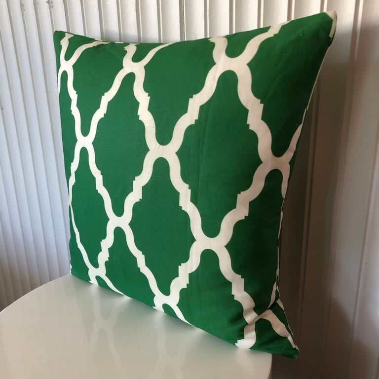 42x42cm Emerald lattice cover made from our luxury linen - cotton. All of our cushion covers are finished with zippered closures and no-fray overlocked seams.