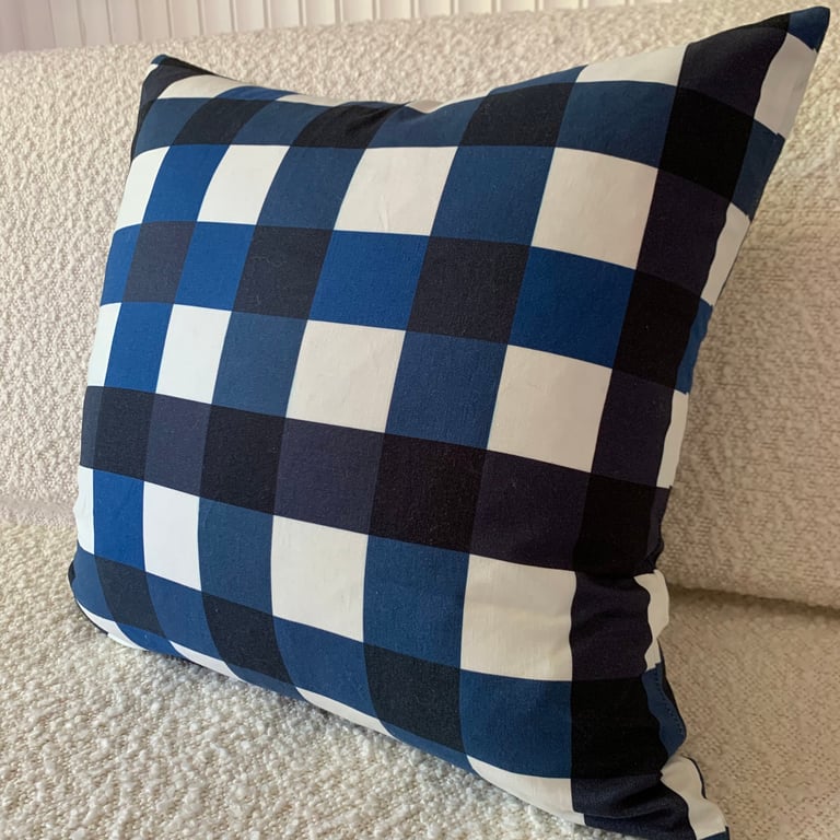 42 x 42cm Individually made from our luxury soft cotton, the plaid cushion cover cushion is fully machine washable. With the same beautiful print on the reverse side.