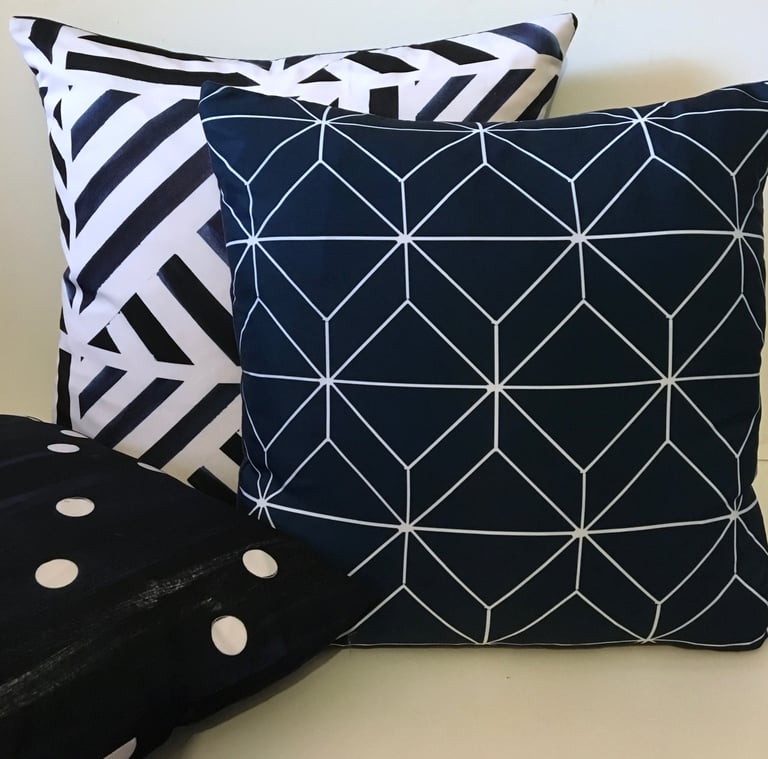 Our larger size 48 x 48cm Individually created from luxury silky poly fabric, with lush navy blue velvet on the back, our Midnight Stripe cushion is easy clean and will remain colourfast with every wash. All of our cushions come with zippered openings and no-fray overlocked seams.